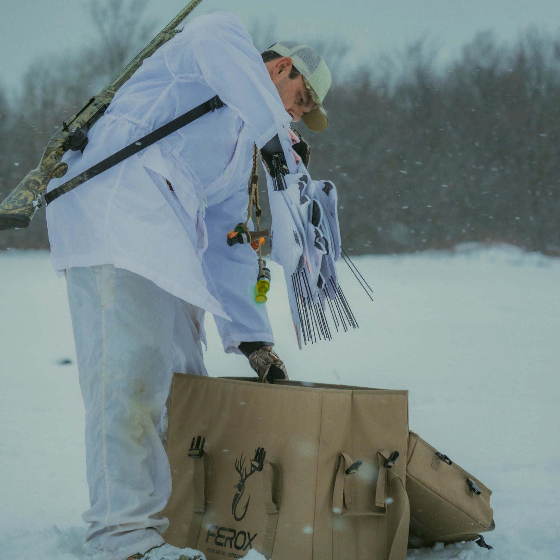 Start your snow goose hunting journey with the FEROX Migration Series Snow Goose Silhouette Decoys 60 Pack. Perfect for expanding your spread or gearing up for your first hunt, this bundle includes 5 Dozens of our highly realistic Snow Goose Silhouette Decoys and our durable Classic Khaki Silhouette Decoy Bag for easy transport and organization.